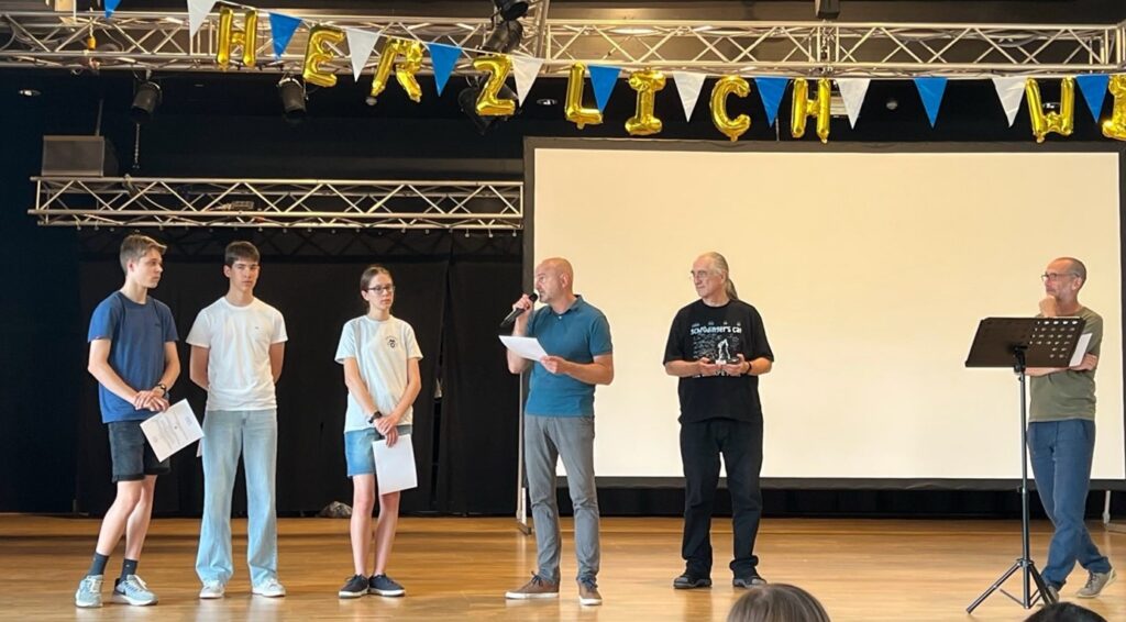 Auch die mathematische Leistung von Matz Moser und Bahaa Ali, zweier Schüler aus Klasse 8, wurde im Rahmen der Begrüßungen durch das Schulleiterteam gewürdigt – die beiden hatten es im Mathematikwettbewerb 8 des Landes Hessens bis in die Finalrunde (3. Runde) geschafft. Gratulation! Gespannt schauen wir auf die 1. Runde dieses Schuljahres am 4.Dezember.