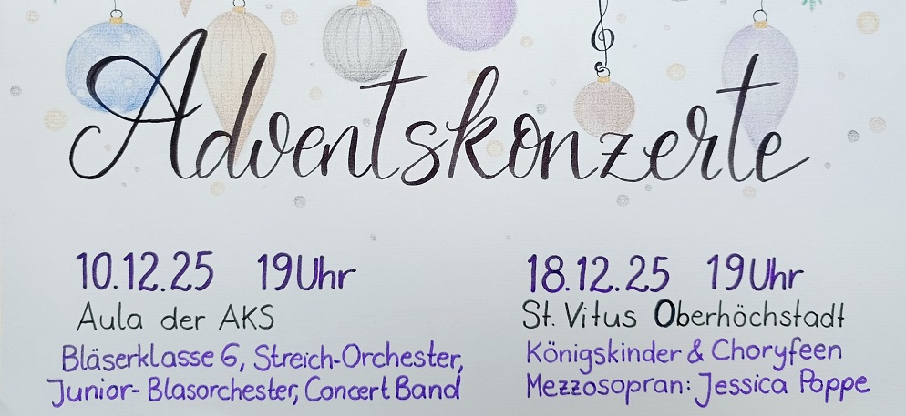 Die Ensembles der AKS stimmen am Mittwoch, den 10. Dezember, und am Donnerstag, den 18. Dezember, musikalisch auf Weihnachten ein. "Ich bin erst so richtig in Weihnachtsstimmung, wenn ich die Chöre der AKS in St. Vitus habe singen hören" - so geht es nicht wenigen, die das inzwischen traditionsreiche Konzert [...]